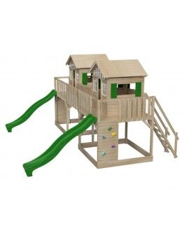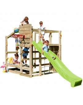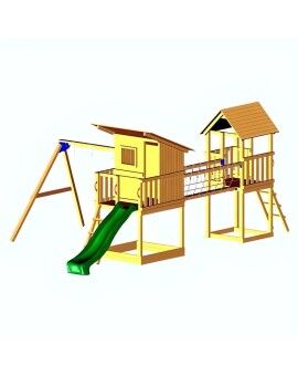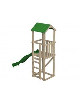 A wooden ramp allows access to the first floor, located 60 cm from the ground. From there, a 30 cm step leads to the platform at a height of 90 cm, from which children can slide down the slide. Taking on the challenge of climbing up and waving to mom and dad is an exciting adventure!