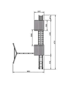 - Monkey ladder on a platform at 40 cm height, which also serves as a bench.