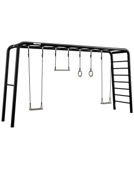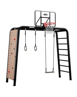 With swing seat, basket case, acrobatic rings and climbing wall!