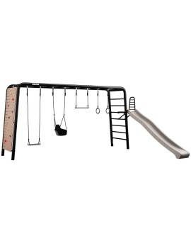 With swing seat, baby seat, acrobatic rings, trapeze, slide and climbing wall!